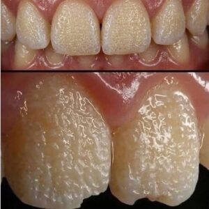 In individuals with AI, the enamel may be too thin, too soft, or poorly mineralized. This means that instead of acting as a strong barrier, it becomes fragile and vulnerable. Teeth may appear discolored—ranging from yellow and brown to gray—or may have a pitted or uneven surface. In some cases, they can also be smaller than usual or irregular in shape.